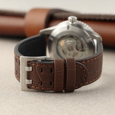 Questo orologio Hamilton ha una cassa in Inox con un diametro di 42 mm ed è dotato di un cinturino in Pelle. All'interno della cassa si trova un movimento di ETA e l'orologio è dotato di un cristallo di Zaffiro singolo antiriflesso.