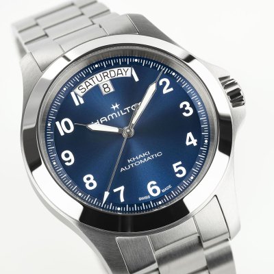Questo orologio Hamilton ha una cassa in Inox con un diametro di 40 mm ed è dotato di un cinturino in Inox. All'interno della cassa si trova un movimento di ETA e l'orologio è dotato di un cristallo di Zaffiro singolo antiriflesso.