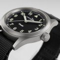Questo orologio Hamilton ha una cassa in Inox con un diametro di 38 mm ed è dotato di un cinturino in Tessuto. All'interno della cassa si trova un movimento di ETA e l'orologio è dotato di un cristallo di Zaffiro.