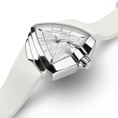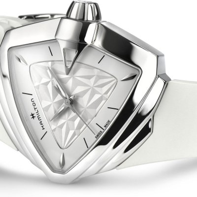 Questo orologio Hamilton ha una cassa in Inox con un diametro di 34.5 mm ed è dotato di un cinturino in gomma. All'interno della cassa si trova un movimento di ETA e l'orologio è dotato di un cristallo di Zaffiro.