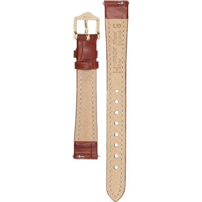 Questo cinturino Hirsch è fatto in pelle ed è collegato all'orologio per mezzo di perni a molla a sgancio rapido. Il cinturino ha una larghezza di 13 mm e si chiude a mezzo di fibbia. Il cinturino ha un attacco dritto, il che significa che questo cinturino è adatto a tutti gli orologi di con attacco dritto.