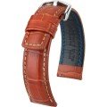 Questo cinturino è realizzato in pregiata pelle di vitello italiana con goffratura in alligatore e foderato con la fodera in pelle per guanti da immersione brevettata Hirsch per resistenza all'acqua.