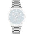 Questo cinturino Hugo Boss è fatto in acciaio inox ed è collegato all'orologio per mezzo di perni a molla. Il cinturino ha una larghezza di 22 mm e si chiude a mezzo di chiusura deployante con bottoni. Il cinturino non ha montatura dritta, il che significa che questo cinturino è adatto solo per gli orologi elencati di seguito.