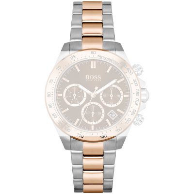 Questo cinturino Hugo Boss è fatto in acciaio inox ed è collegato all'orologio per mezzo di perni a molla. Il cinturino ha una larghezza di 18 mm e si chiude a mezzo di chiusura deployante con bottoni. Il cinturino non ha montatura dritta, il che significa che questo cinturino è adatto solo per gli orologi elencati di seguito.