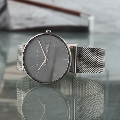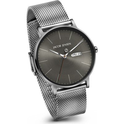 Questo orologio Jacob Jensen ha una cassa in Titanio con un diametro di 40 mm ed è dotato di un cinturino in Inox. All'interno della cassa si trova un movimento di Miyota e l'orologio è dotato di un cristallo di Zaffiro.