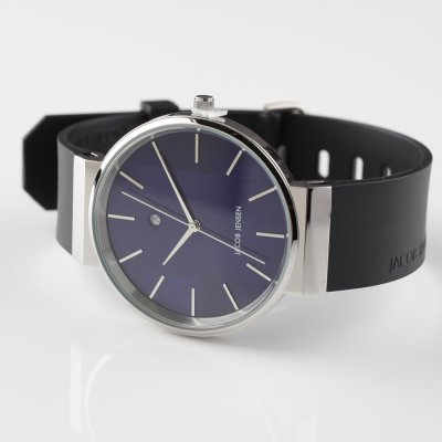 Questo orologio Jacob Jensen ha una cassa in Inox con un diametro di 39 mm ed è dotato di un cinturino in gomma. All'interno della cassa si trova un movimento di Ronda e l'orologio è dotato di un cristallo di Minerale.