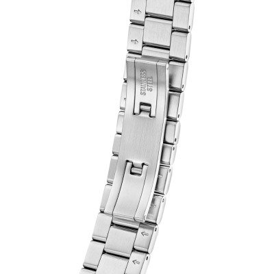 Questo orologio Jaguar ha una cassa in Inox con un diametro di 40 mm ed è dotato di un cinturino in Inox. All'interno della cassa si trova un movimento di Ronda e l'orologio è dotato di un cristallo di Zaffiro.