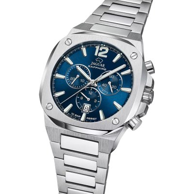 Questo orologio Jaguar ha una cassa in Inox con un diametro di 42.9 mm ed è dotato di un cinturino in Inox. All'interno della cassa si trova un movimento di Ronda e l'orologio è dotato di un cristallo di Zaffiro.