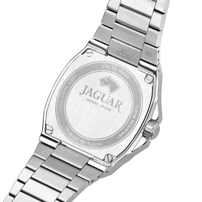 Questo orologio Jaguar ha una cassa in Inox con un diametro di 41 mm ed è dotato di un cinturino in Inox. All'interno della cassa si trova un movimento di Ronda e l'orologio è dotato di un cristallo di Zaffiro.