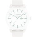 Questo cinturino Lacoste è fatto in silicone ed è collegato all'orologio per mezzo di perni a molla. Il cinturino ha una larghezza di 21 mm e si chiude a mezzo di fibbia. Il cinturino ha un attacco dritto, il che significa che questo cinturino è adatto a tutti gli orologi di Lacoste con attacco dritto.