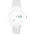 Questo cinturino Lacoste è fatto in silicone ed è collegato all'orologio per mezzo di perni a molla. Il cinturino ha una larghezza di 22 mm e si chiude a mezzo di fibbia. Il cinturino ha un attacco dritto, il che significa che questo cinturino è adatto a tutti gli orologi di Lacoste con attacco dritto.