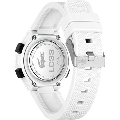 Questo orologio Lacoste ha una cassa in Resina con un diametro di 34 mm ed è dotato di un cinturino in gomma. All'interno della cassa si trova un movimento di Bao Jie e l'orologio è dotato di un cristallo di Minerale.