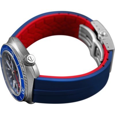 Questo orologio Ligure ha una cassa in Inox con un diametro di 41 mm ed è dotato di un cinturino in gomma. All'interno della cassa si trova un movimento di ETA e l'orologio è dotato di un cristallo di Zaffiro.