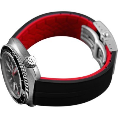 Questo orologio Ligure ha una cassa in Inox con un diametro di 41 mm ed è dotato di un cinturino in gomma. All'interno della cassa si trova un movimento di Sellita e l'orologio è dotato di un cristallo di Zaffiro.