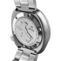L'orologio Tartaruga ha una cassa a forma di "tartaruga" molto particolare, elegante e pratica al tempo stesso. La lunetta in ceramica finemente scanalata è di ottima fattura e sta comodamente al polso. Le lancette a siringa, dal design accattivante, sono riempite di un lume fintamente patinato che contrasta con il quadrante nero pece. I dettagli rossi degli indici aggiungono un ulteriore livello di raffinatezza a questo orologio subacqueo elegante e robusto.