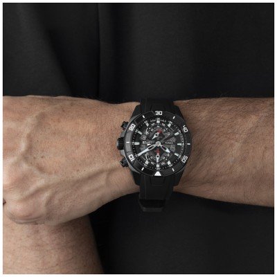 Questo orologio Lotus ha una cassa in Inox con un diametro di 44 mm ed è dotato di un cinturino in gomma. All'interno della cassa si trova un movimento di Miyota e l'orologio è dotato di un cristallo di Minerale.