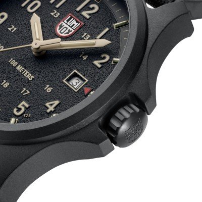 Questo orologio Luminox ha una cassa in Carbonio con un diametro di 43 mm ed è dotato di un cinturino in gomma. All'interno della cassa si trova un movimento di Ronda e l'orologio è dotato di un cristallo di Zaffiro.