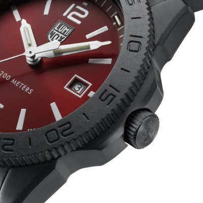 Questo orologio Luminox ha una cassa in Inox con un diametro di 44 mm ed è dotato di un cinturino in gomma. All'interno della cassa si trova un movimento di Ronda e l'orologio è dotato di un cristallo di Zaffiro.
