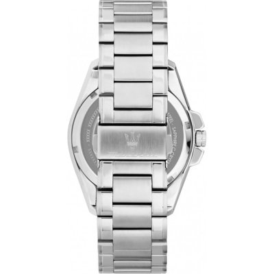 Questo orologio Maserati ha una cassa in Inox con un diametro di 42 mm ed è dotato di un cinturino in Inox. All'interno della cassa si trova un movimento di Miyota e l'orologio è dotato di un cristallo di Zaffiro.