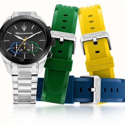 Questo orologio Maserati ha una cassa in Inox con un diametro di 45 mm ed è dotato di un cinturino in Inox. All'interno della cassa si trova un movimento di Miyota e l'orologio è dotato di un cristallo di Minerale.
