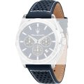Questo orologio Maserati ha una cassa in Inox con un diametro di 43 mm ed è dotato di un cinturino in Pelle. All'interno della cassa si trova un movimento di Miyota e l'orologio è dotato di un cristallo di Minerale.