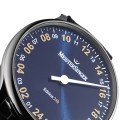 Un'intera giornata in uno sguardo limitato a soli 100 esemplari. MeisterSinger è sinonimo di una concezione rilassata del tempo e ora porta questo principio un passo avanti con questa edizione limitata a 100 pezzi di 24 ore. L'orologio non divide artificialmente la giornata in due metà, ma mostra le 24 ore nel loro insieme, in un flusso naturale e ininterrotto. La lancetta unica non gira sul quadrante due volte al giorno come di consueto, ma solo una volta, consentendo di vedere l'intera giornata in un colpo d'occhio. Al posto delle consuete indicazioni di 5 minuti, linee sottili e punti alternati sul bordo del quadrante indicano incrementi di 15 minuti. Il quadrante blu a raggiera presenta anche numeri delle ore applicati in oro, che conferiscono al quadrante un senso di profondità, ed è dotato di un vetro zaffiro bombato sul quadrante. Il movimento automatico svizzero Sellita SW330, appositamente modificato per gli orologi MeisterSinger a lancetta singola, ha una riserva di carica di 52 ore. Può essere osservato attraverso il fondello mentre svolge il suo compito. Sul fondello di ogni orologio è inciso il numero dell'edizione.