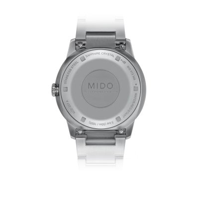 Questo orologio MIDO ha una cassa in Inox con un diametro di 35 mm ed è dotato di un cinturino in Inox. All'interno della cassa si trova un movimento di ETA e l'orologio è dotato di un cristallo di Zaffiro.