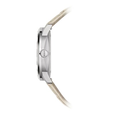 La serie Commander di MIDO è stata creata nel 1995 e da allora è il cuore della loro collezione. Il Commander Lady è una versione femminile di questo classico di MIDO; quasi minimalista nell'approccio, con un'enorme attenzione ai dettagli. La cassa rotonda con lunetta sottile e scala dei minuti smussata apre il quadrante con 11 indici di diamanti autentici (per un totale di 0,0418 carati). I dettagli neri conferiscono alle lancette definizione e chiarezza, mentre la corona integrata e discreta assicura che nulla distragga dall'attenzione principale. Alimentato da un movimento svizzero ETA con 72 ore di riserva di carica, il MIDO Commander Lady è forte ed elegante.