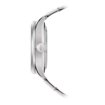 Questo orologio MIDO ha una cassa in Inox con un diametro di 42 mm ed è dotato di un cinturino in Inox. All'interno della cassa si trova un movimento di ETA e l'orologio è dotato di un cristallo di Zaffiro singolo antiriflesso.