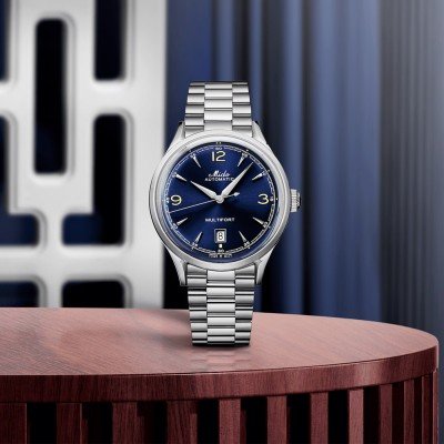 Questo orologio MIDO ha una cassa in Inox con un diametro di 40 mm ed è dotato di un cinturino in Inox. All'interno della cassa si trova un movimento di ETA e l'orologio è dotato di un cristallo di Zaffiro.