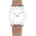 Questo cinturino Mondaine è fatto in pelle ed è collegato all'orologio per mezzo di perni a molla. Il cinturino ha una larghezza di 22 mm e si chiude a mezzo di fibbia. Il cinturino ha un attacco dritto, il che significa che questo cinturino è adatto a tutti gli orologi di Mondaine con attacco dritto.