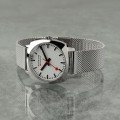 Questo orologio Mondaine ha una cassa in Inox con un diametro di 31 mm ed è dotato di un cinturino in Inox. All'interno della cassa si trova un movimento di Ronda e l'orologio è dotato di un cristallo di Zaffiro.