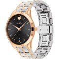 Questo orologio Movado ha una cassa in Inox con un diametro di 39.5 mm ed è dotato di un cinturino in Inox. All'interno della cassa si trova un movimento di ETA e l'orologio è dotato di un cristallo di Zaffiro.