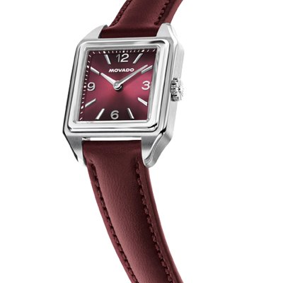 La collezione Movado Heritage attinge alla ricca storia del marchio, riportando gli orologi d'epoca ai giorni nostri. L'eleganza geometrica dell'Art Déco si riflette negli orologi "Heritage 1917". Questo orologio, che celebra e reinventa i primi orologi quadrati Movado del 1917, ha una cassa sagomata con linee ben definite e un aspetto architettonico. Gli aggiornamenti contemporanei rispetto all'originale sono un bracciale unilink di nuova concezione o un ricco cinturino in pelle conciata italiana di ispirazione vintage e un quadrante ombré a raggi di sole, con sottili variazioni tonali, che richiama lo skyline Deco. Il movimento automatico svizzero Sellita SW200, con rotore personalizzato dal design Deco, è dotato di lancette lisce e scorrevoli ed è visibile attraverso il fondello in vetro zaffiro.