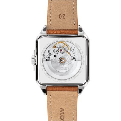 La collezione Movado Heritage attinge alla ricca storia del marchio, riportando gli orologi d'epoca ai giorni nostri. L'eleganza geometrica dell'Art Déco si riflette negli orologi "Heritage 1917". Questo orologio, che celebra e reinventa i primi orologi quadrati Movado del 1917, ha una cassa sagomata con linee ben definite e un aspetto architettonico. Gli aggiornamenti contemporanei rispetto all'originale sono un bracciale unilink di nuova concezione o un ricco cinturino in pelle conciata italiana di ispirazione vintage e un quadrante ombré a raggi di sole, con sottili variazioni tonali, che richiama lo skyline Deco. Il movimento automatico svizzero Sellita SW200, con rotore personalizzato dal design Deco, è dotato di lancette lisce e scorrevoli ed è visibile attraverso il fondello in vetro zaffiro.