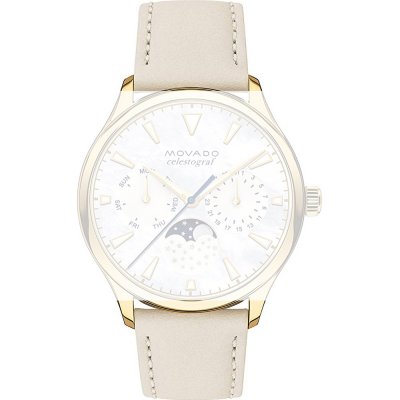 Questo cinturino Movado è fatto in pelle ed è collegato all'orologio per mezzo di perni a molla a sgancio rapido. Il cinturino ha una larghezza di 18 mm e si chiude a mezzo di fibbia. Il cinturino ha un attacco dritto, il che significa che questo cinturino è adatto a tutti gli orologi di Movado con attacco dritto.