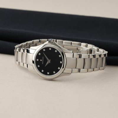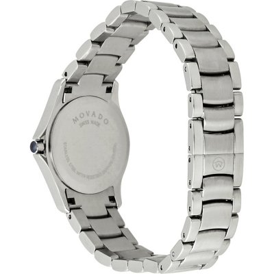 Questo orologio Movado ha una cassa in Inox con un diametro di 26 mm ed è dotato di un cinturino in Inox. All'interno della cassa si trova un movimento di ETA e l'orologio è dotato di un cristallo di Zaffiro.
