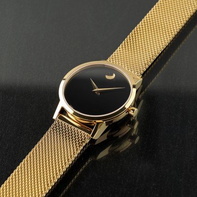 Questo orologio Movado ha una cassa in Inox con un diametro di 28 mm ed è dotato di un cinturino in Inox. All'interno della cassa si trova un movimento di ETA e l'orologio è dotato di un cristallo di Zaffiro.
