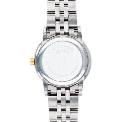 Questo orologio Movado ha una cassa in Inox con un diametro di 28 mm ed è dotato di un cinturino in Inox. All'interno della cassa si trova un movimento di ETA e l'orologio è dotato di un cristallo di Zaffiro.