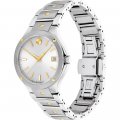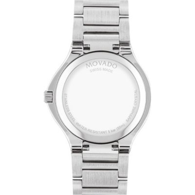 Questo orologio Movado ha una cassa in Inox con un diametro di 32 mm ed è dotato di un cinturino in Inox. All'interno della cassa si trova un movimento di Ronda e l'orologio è dotato di un cristallo di Zaffiro.