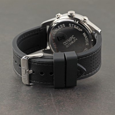 Questo orologio Olympic ha una cassa in Inox con un diametro di 44 mm ed è dotato di un cinturino in gomma. All'interno della cassa si trova un movimento di Seiko Instruments Inc. e l'orologio è dotato di un cristallo di Minerale.