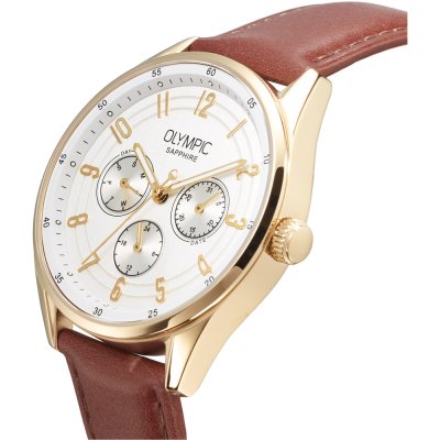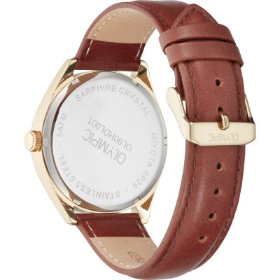 Questo orologio Olympic ha una cassa in Inox con un diametro di 40 mm ed è dotato di un cinturino in Pelle. All'interno della cassa si trova un movimento di Miyota e l'orologio è dotato di un cristallo di Zaffiro.
