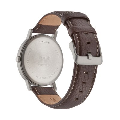 Questo orologio Olympic ha una cassa in Titanio con un diametro di 40 mm ed è dotato di un cinturino in Pelle. All'interno della cassa si trova un movimento di Miyota e l'orologio è dotato di un cristallo di Zaffiro.