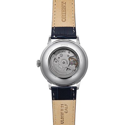 Questo orologio Orient ha una cassa in Inox con un diametro di 40 mm ed è dotato di un cinturino in Pelle. All'interno della cassa si trova un movimento di Orient e l'orologio è dotato di un cristallo di Minerale.