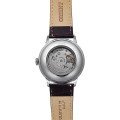 Questo orologio Orient ha una cassa in Inox con un diametro di 40 mm ed è dotato di un cinturino in Pelle. All'interno della cassa si trova un movimento di Orient e l'orologio è dotato di un cristallo di Minerale.