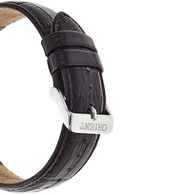 Questo orologio Orient ha una cassa in Inox con un diametro di 40.5 mm ed è dotato di un cinturino in Pelle. All'interno della cassa si trova un movimento di Orient e l'orologio è dotato di un cristallo di Minerale.