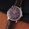 Questo orologio Orient ha una cassa in Inox con un diametro di 40 mm ed è dotato di un cinturino in Pelle. All'interno della cassa si trova un movimento di Orient e l'orologio è dotato di un cristallo di Minerale.