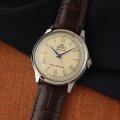 Questo orologio Orient ha una cassa in Inox con un diametro di 38 mm ed è dotato di un cinturino in Pelle. All'interno della cassa si trova un movimento di Epson e l'orologio è dotato di un cristallo di Minerale.