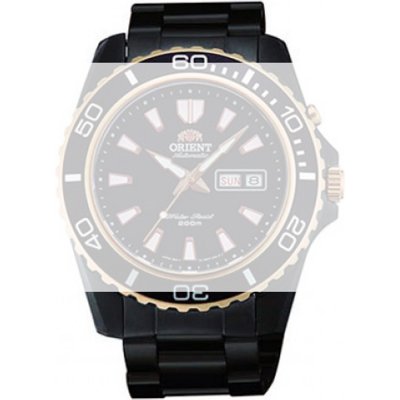 Questo cinturino Orient è fatto in acciaio inox ed è collegato all'orologio per mezzo di perni a molla. Il cinturino ha una larghezza di 22 mm e si chiude a mezzo di chiusura deployante con bottoni e sicurezza. Il cinturino non ha montatura dritta, il che significa che questo cinturino è adatto solo per gli orologi elencati di seguito.
