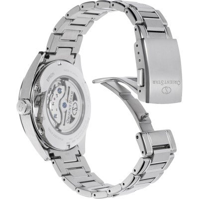Questo orologio Orient ha una cassa in Inox con un diametro di 40 mm ed è dotato di un cinturino in Inox. All'interno della cassa si trova un movimento di Orient e l'orologio è dotato di un cristallo di Zaffiro singolo antiriflesso.